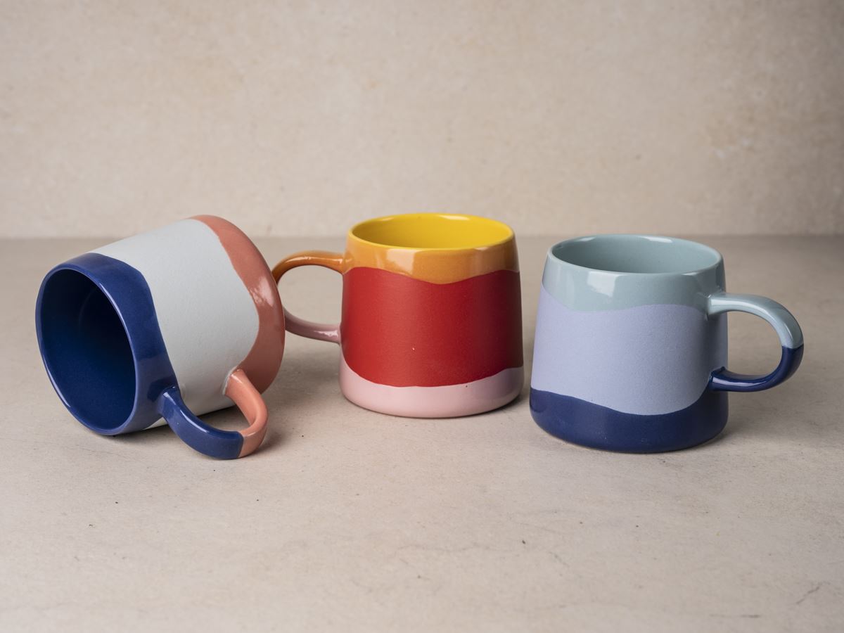 Dieser schöne Becher beweist eindrucksvoll: Zwischen Schwarz und Weiß ist jede Menge Bunt. Und das sorgt für ausgesprochen gute Laune! Die Kombination aus Rosa, Rot, Gelb und Blau wirkt auf den ersten Blick eher ungewöhnlich, ist aber äußerst erfrischend, angenehm ausgefallen und fröhlich. Also Color Blocking at it´s best! Denn die ausgesprochen kontrastreichen Farben dieses Dekors werden auf dem Becher in klar voneinander abgegrenzter Gestalt miteinander kombiniert und erzeugen so einen auffälligen, dynamischen Look. Da kann der Himmel noch so voller grauer Wolken hängen, dieser Artikel hat die Sonne im Gepäck. Alltag aus und Entspannung an. Genießen Sie aus diesem Becher spritzig-süßen Früchtetee oder kräftigen Wachmacher-Kaffee. Mit einer Füllmenge von 0,4 l verfügt der Artikel über ausreichend Platz für das Getränk Ihrer Wahl. Die zeitlose, konische Form des Bechers liegt angenehm in der Hand und erhält durch den Oberflächenmix aus mattem und glänzendem Finish einen exklusiven Touch. Ein weiteres, liebevoll gestaltetes Detail ist der zweifarbige Henkel. Rundum ein farbenfroher und fröhlicher Produktlook der Extraklasse.