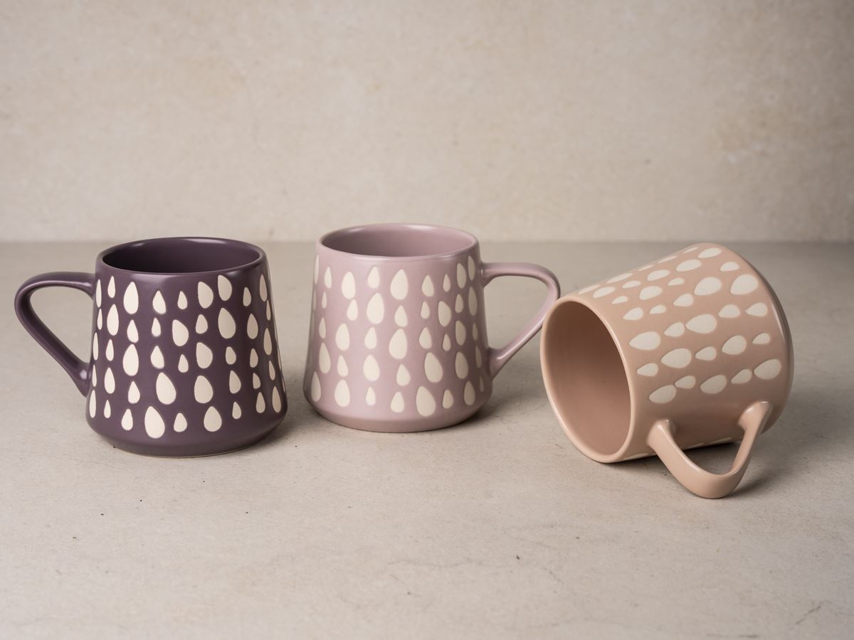 It´s a Match! Und was für eins. Denn selten hatten wir eine so gelungene Farbkombination auf dem Tisch! Der perfekte Mix aus tiefem Aubergine-Lila und edlem Alt- und Blassrosa ist ein absoluter Volltreffer. Die drei Farben harmonieren wunderbar miteinander und machen einzeln, aber auch als Team eine gute Figur. In Verbindung mit dem zurückhaltenden Design im minimalistischen geometrischen Stil ein wahrer Blickfang der begeistert. Die hellen Dekorelemente heben sich hierbei durch das abgetönte weiß optimal von den Purpurtönen ab und so entsteht ein schöner optischer Kontrast der den äußerst gelungenen Produktlook abrundet. Der Becher verfügt über eine mittlere Füllmenge von 0,35 l und ist somit der perfekte Allrounder für alle Heißgetränke. Ob Früchtetee, Schwarztee, Latte-Macchiato oder Milchkaffee - hier findet alles seinen Platz. Die konisch zulaufende Form des Artikels liegt angenehm in der Hand und der praktische Henkel eignet sich durch sein durchdachtes Design ideal als Daumenablage. Das matte Oberflächenfinish sorgt zudem für eine angenehme Haptik und verleiht dem Artikel eine absolut exklusive Optik.