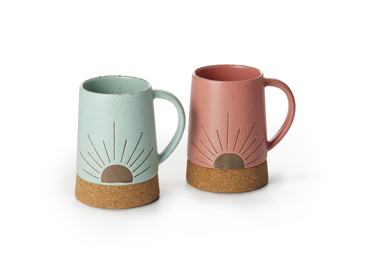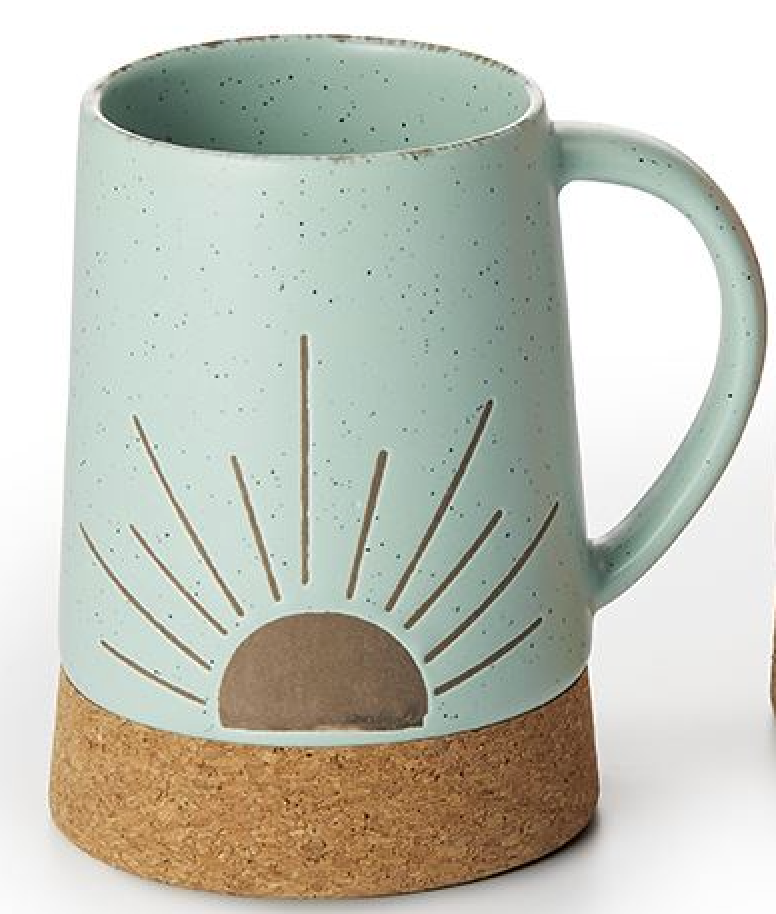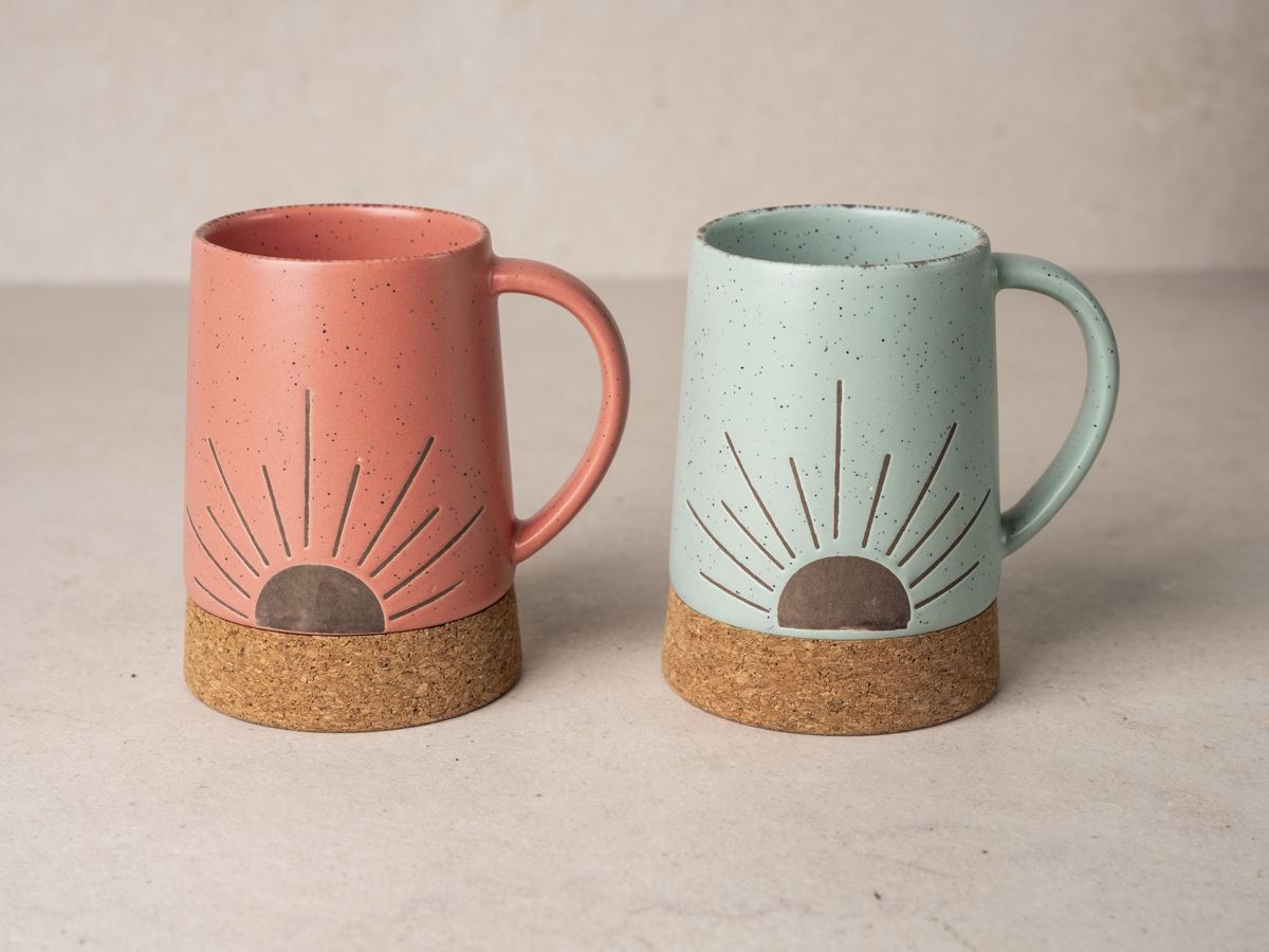 Sommer, Sonne, Lebensfreude! Dieser Becher hat gute Laune im Gepäck und bringt paradiesisches Urlaubsfeeling an den heimischen Küchentisch. Die perfekte Möglichkeit sich aus dem Alltag herauszuträumen, die Augen zu schließen und seinen Gedanken nachzuhängen. Und schon ertönt ein wohliges Meeresrauschen im Ohr und die Füße graben sich in feinen, weißen Strandsand. Herrlich! Der absolute Blickfang und Clou dieses Artikels ist der Boden aus Kork. Dieser ist fest mit dem New Bone China Material verbunden und verleiht dem Becher ein absolutes Alleinstellungsmerkmal. So entsteht ein ausgefallener Produktlook im angesagten Materialmix, der eine außergewöhnliche Optik und interessante Kontraste erzeugt. Ein weiteres Highlight bildet das fröhliche Design. Die untergehende Sonne mit ihren leuchtendhellen Strahlen zahlt ideal auf das romantische Sommerfeeling des Artikels ein und auch die fröhlichen Hintergrundfarben in kräftigem Apricot und sattem Türkis erinnern an Südfrüchte und Badespaß in glasklarem Wasser. Der Becher verfügt über eine mittlere Füllmenge von 0,35 l und eignet sich ausgezeichnet für den Genuss diverser Kaffeespezialitäten oder Ihres Lieblingstees.