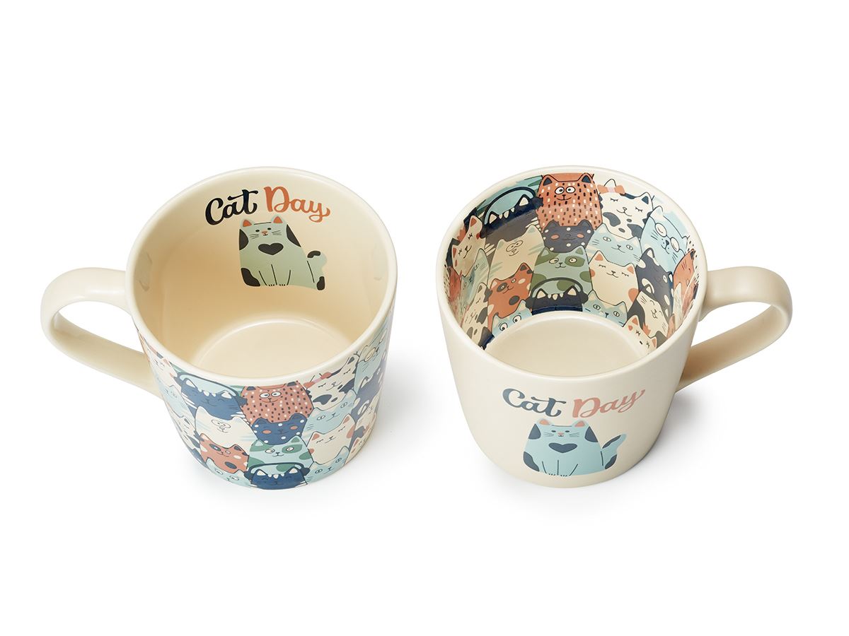 Ein wahres Fest für die Augen! Ob bunt gecheckt, lässig mit Kopfhörern auf den Ohren, trendiger Brille auf der Nase oder großem Herzen auf der Brust, diese muntere Katzenbande lässt keine Langeweile aufkommen und so gibt es auf dem fröhlichen Dekor dieses schönen New Bone China Bechers immer etwas Neues zu entdecken. Ein weiterer Clou ist das außergewöhnliche Produktdesign im angesagten Inside Out Look. Hierbei wird das Dekor sowohl auf der Becherinnen-, als auch -außenseite aufgebracht. Dies verleiht dem Artikel einen besonderen Touch und macht ihn zum Hingucker auf dem Küchentisch. Der gelungene Farbmix aus blau- und orangetönen sorgt zudem für eine äußerst harmonische Optik und bildet so einen beruhigenden Kontrast zu dem lebhaften Design. Die zeitlose Becherform mit ihrem ergonomischen Henkel sorgt für ein angenehmens Nutzererlebnis und die Füllmenge von 0,4 l ermöglicht den Genuss diverser Heißgetränke. Ob Tee oder Kaffee, mit diesem Becher wird every day zum Cat Day!