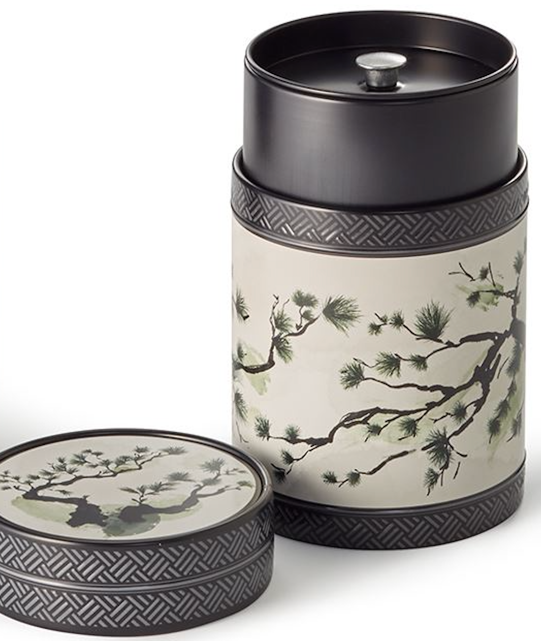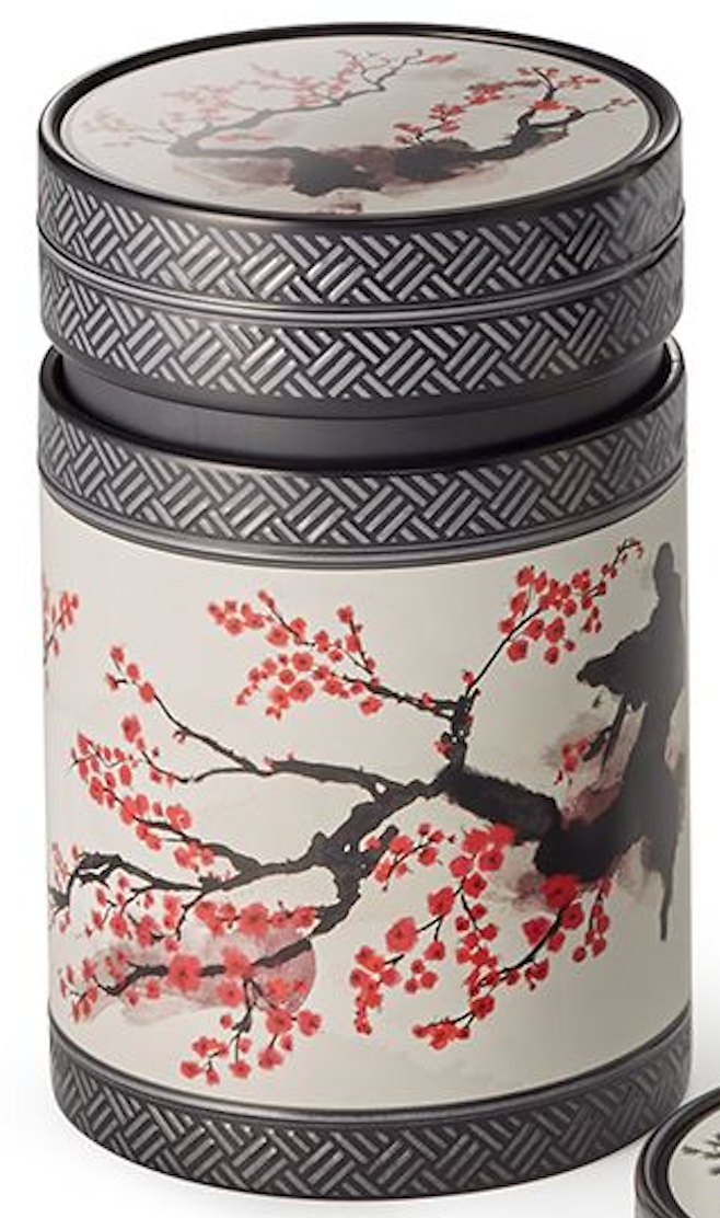 Ein Klassiker in neuem Gewand! Das beliebte Kirschblütenthema erhält auf dieser zauberhaften Schmuckdose einen Reboost und modernen Anstrich. Und so zeigt sich, dass Tradition und Zeitgeist keinen Widerspruch darstellen. Die Illustration im japanischen Watercolour-Stil zeigt einen knorrigen Kiefern- und Kirschblütenast auf puristischem, cremefarbenem Hintergrund. Eingefasst in mattschwarz bedrucktes Weißblech, verziert mit aufwändigen Prägungen, entsteht so ein besonders exklusiver Look. Die Dose mit den Maßen H 11,7 cm, Ø 7,5 cm überzeugt durch ihre kompakte, runde Form und bietet durch den integrierten Innendeckel zusätzlichen Aromaschutz. Eine ausgefallene optische Besonderheit bildet der dezente Absatz zwischen Deckel und Dosenkörper, der gemeinsam mit dem modernen, nach innen gerollten Deckelrand eine spannende und zeitgemäße Produktoptik erzeugt. Mit einer Füllmenge von ca. 150 g eignet sich die Dose ideal zur Lagerung Ihres Lieblingstees oder schmackhafter, japanischer Spezialitäten wie beispielsweise einem Sencha Tee.