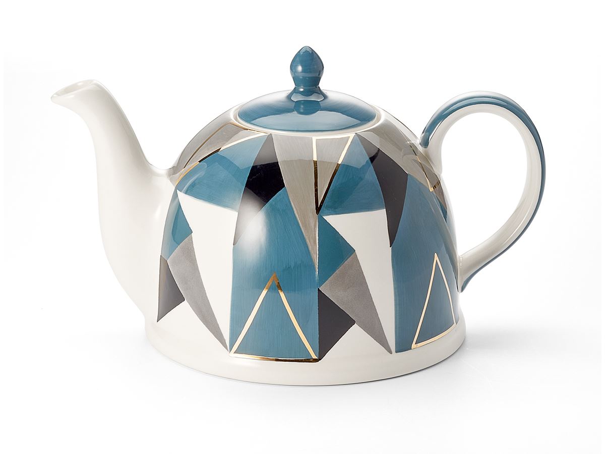 Ob in der Mode oder im Livingbereich - Grafische Muster und geometrische Formen finden sich momentan überall und sind absolut im Trend. Die Designsprache dieser schönen Keramikkanne greift dies auf und ist hierdurch up to date. Auch die gewählten Farben: grau, taubenblau und schwarz orientieren sich an aktuellen Farbtrends und machen diese Kanne somit zu einem rundum zeitgemäßen Artikel. Die feine Goldauflage sorgt zudem für eine glanzvolle Optik. Mit einer Füllmenge von 1,9 l eignet sich die Kanne insbesondere zur Bewirtung von Gästen und ermöglicht Teegenuss ohne häufiges Nachbrühen.