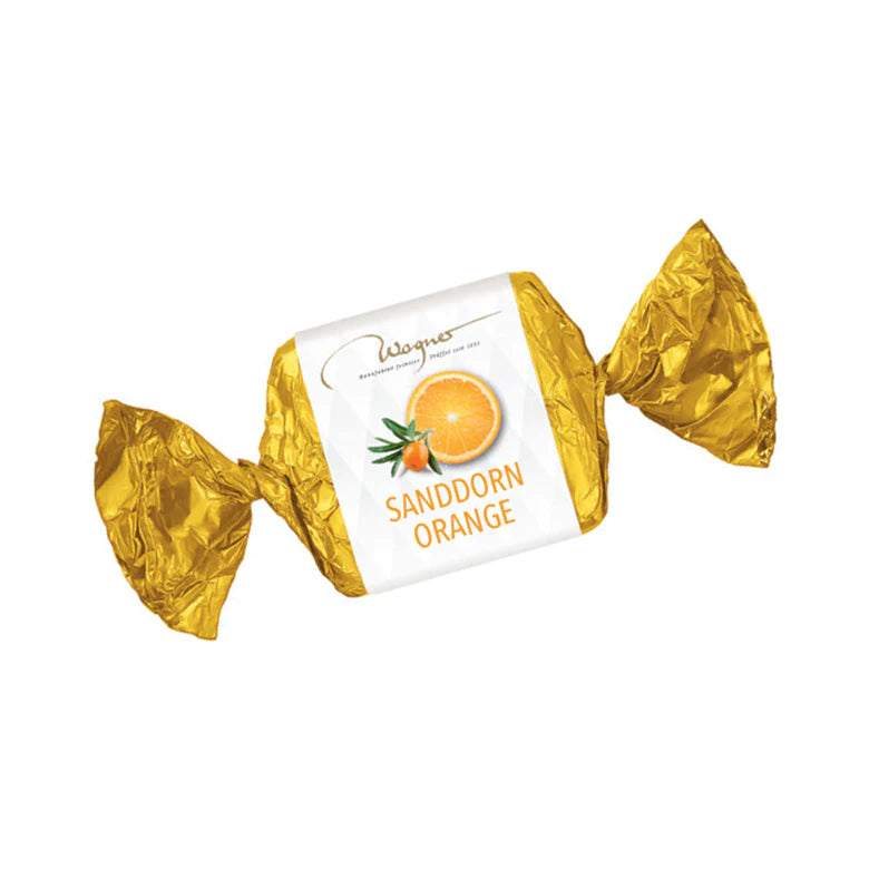 Sanddorn Orange Praline gefüllt mit Vollmilchschokolade (Kakao: 35% mindestens im Schokoladenanteil) ohne Alkohol