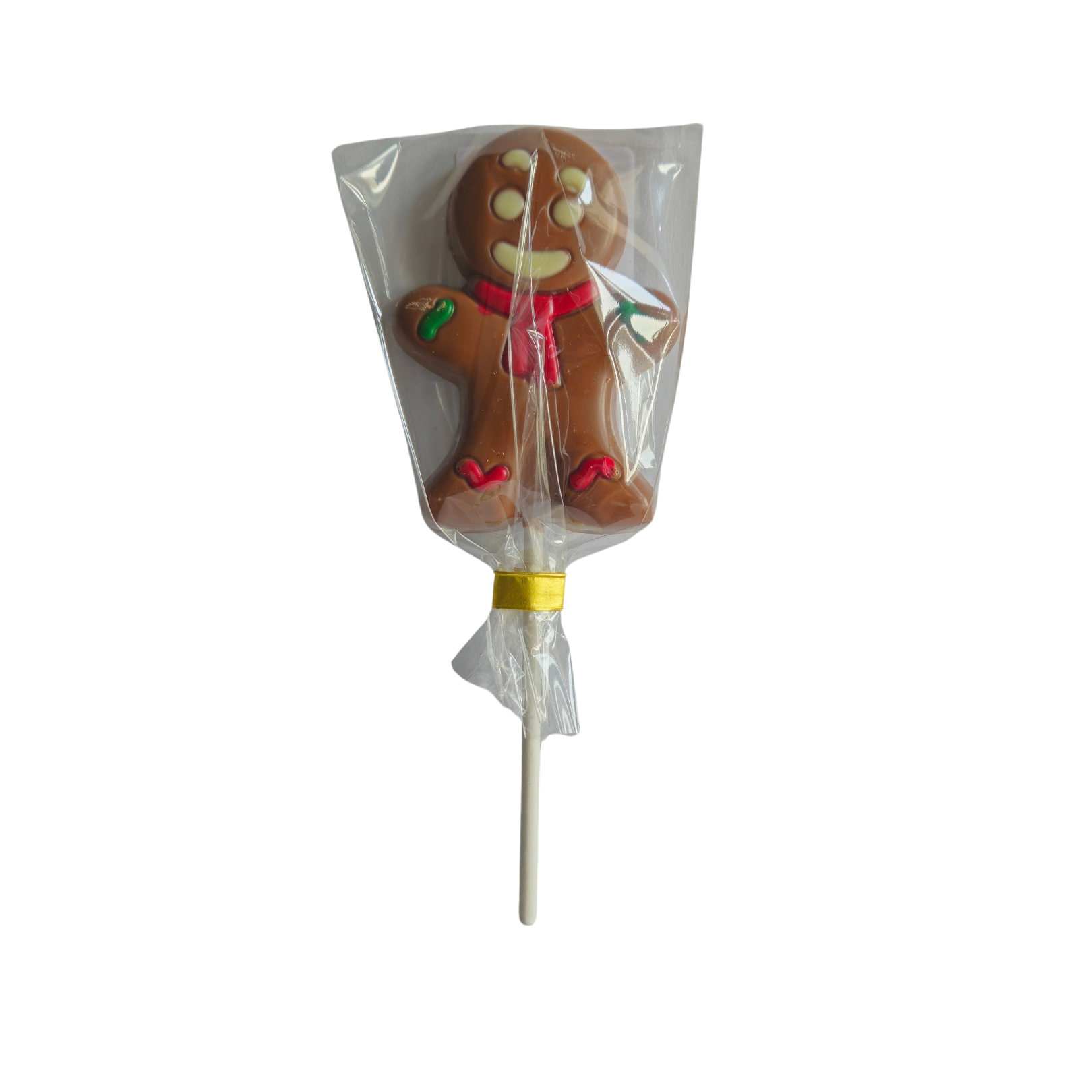 Schokoladenlutscher einzeln verpackt, dunkle Schokolade gefärbt